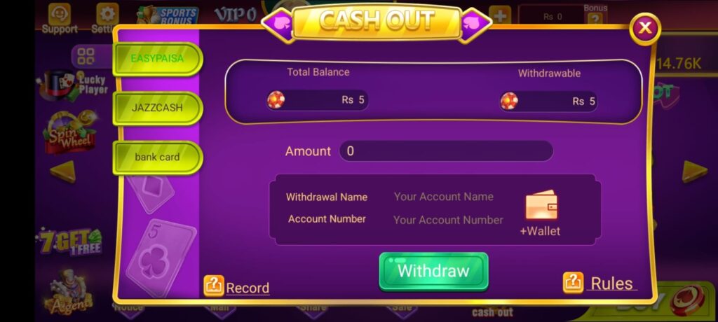 | Deposit & Withdraw | JazzCash, EasyPaisa, Bank Transfer (Pakistani Players) |