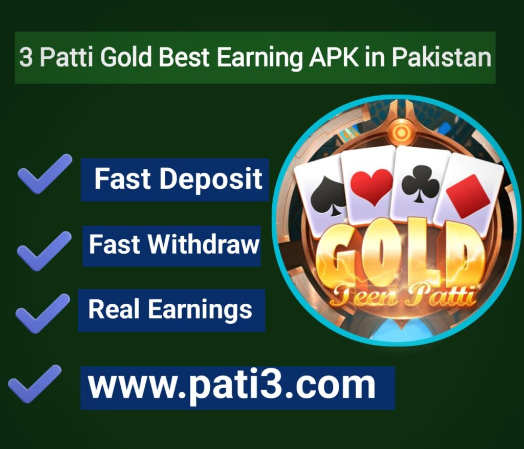 3 Patti Gold is Best Money Earning Gaming Apk in Pakistan 2026. Gold is Allow For user To play this Game entertain mini Games and Earn Real Money for your Own Mobile Devices. Challenge friends in private rooms or compete against millions of players worldwide in thrilling tournaments. The game features stunning graphics, smooth gameplay, and generous daily bonuses that keep you coming back for more.