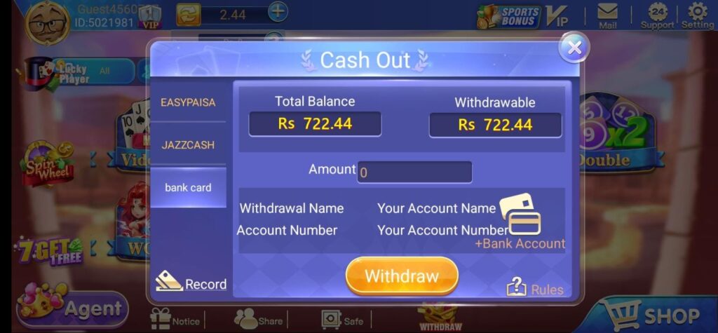 | Deposit & Withdraw | JazzCash, EasyPaisa, Bank Transfer (Pakistan) |